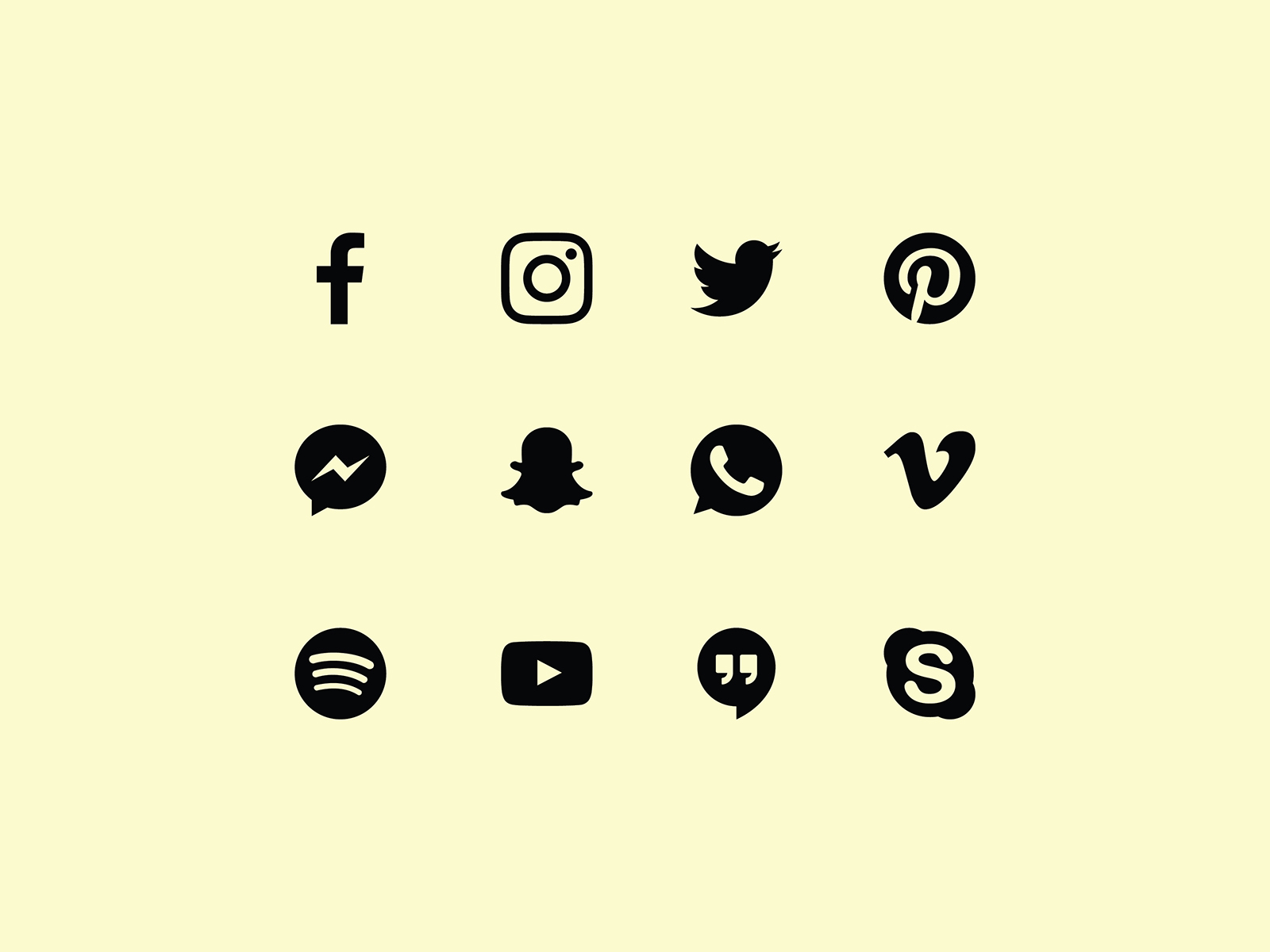 A versatile collection of social media icons designed for web and app use, featuring original brand styles, solid color versions, and modern outline variations.